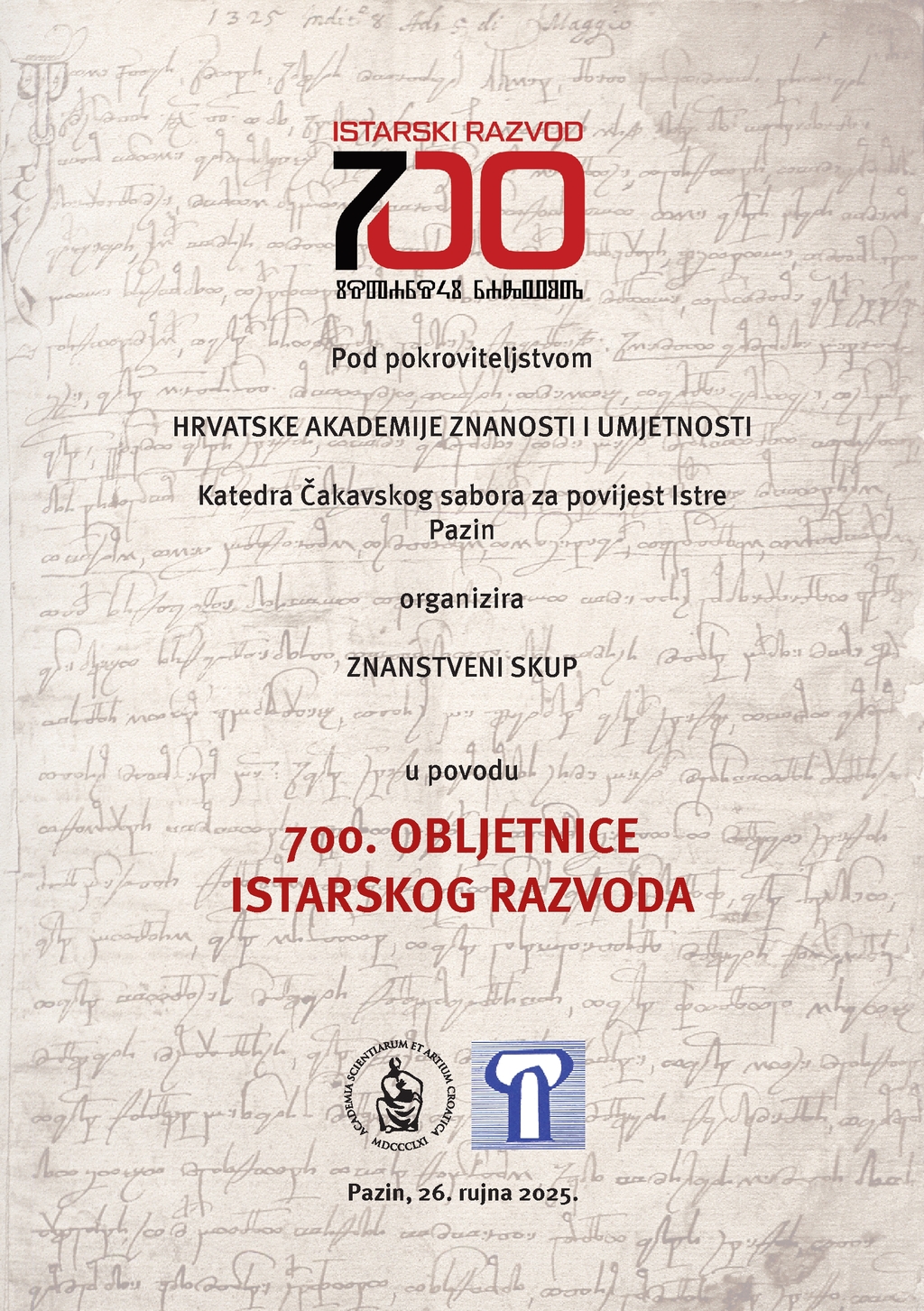 Pozivamo Vas na 52. znanstveni skup PAZINSKI MEMORIJAL na temu ISTARSKI RAZVOD: GLAGOLJICA. GRANICA. SREDNJI VIJEK. koji će se održati u petak, 26. rujna 2025. u Spomen domu Pazin s početkom u 9,00 sati. Radujemo se Vašem dolasku! Preuzmite: program (.pdf, 2 MB)