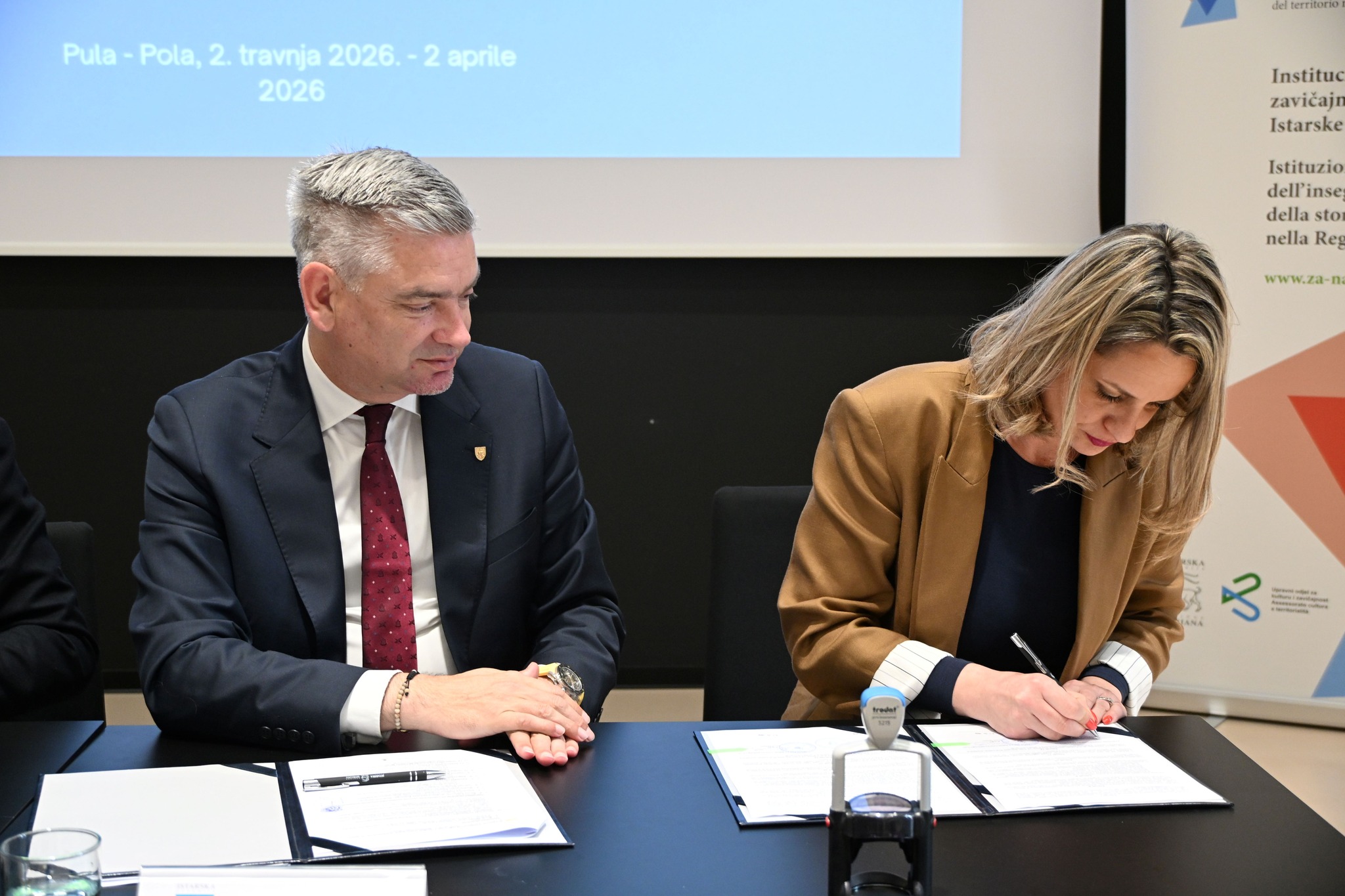 Ugovore su uručili Boris Miletić, župan Istarske županije – Regione Istriana, te Vladimir Torbica, pročelnik Upravnog odjela za kulturu i zavičajnost Istarske županije – Regione Istriana.